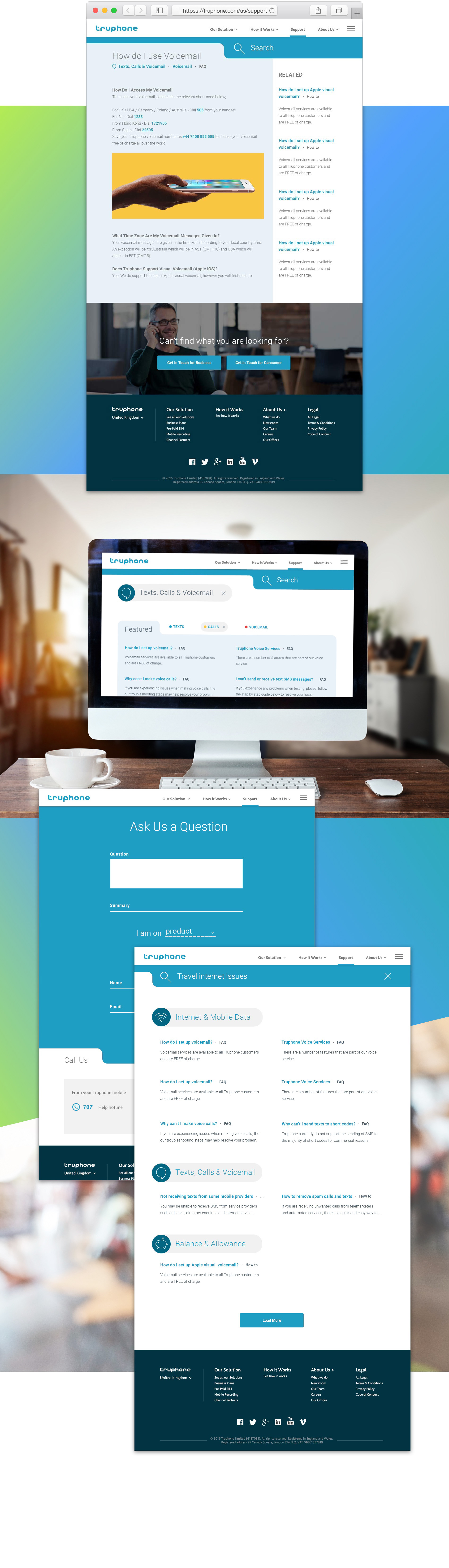 Visual designs for the Truphone support website.